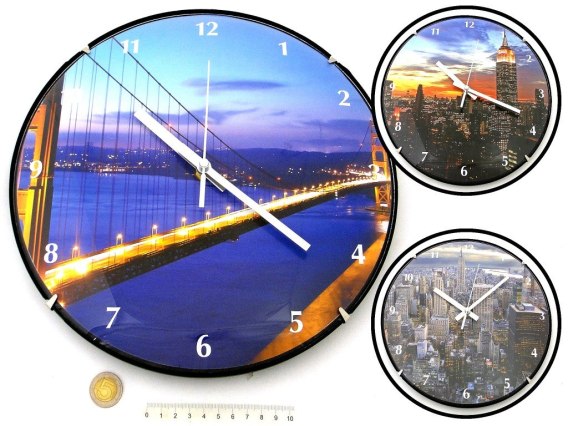 Zegar wypukły miasta, cichy mechanizm śr.30 cm