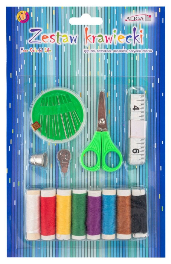 • Zestaw krawiecki - igły,nici,nawlekacz, naparstek, nożyczki, miarka NIT-1078