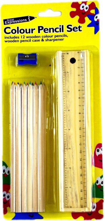 Zestaw przyb.szkol. blist. 15 elem. z piórnikiem ekolg. + linijka 20cm + 12szt kredek + temperówka